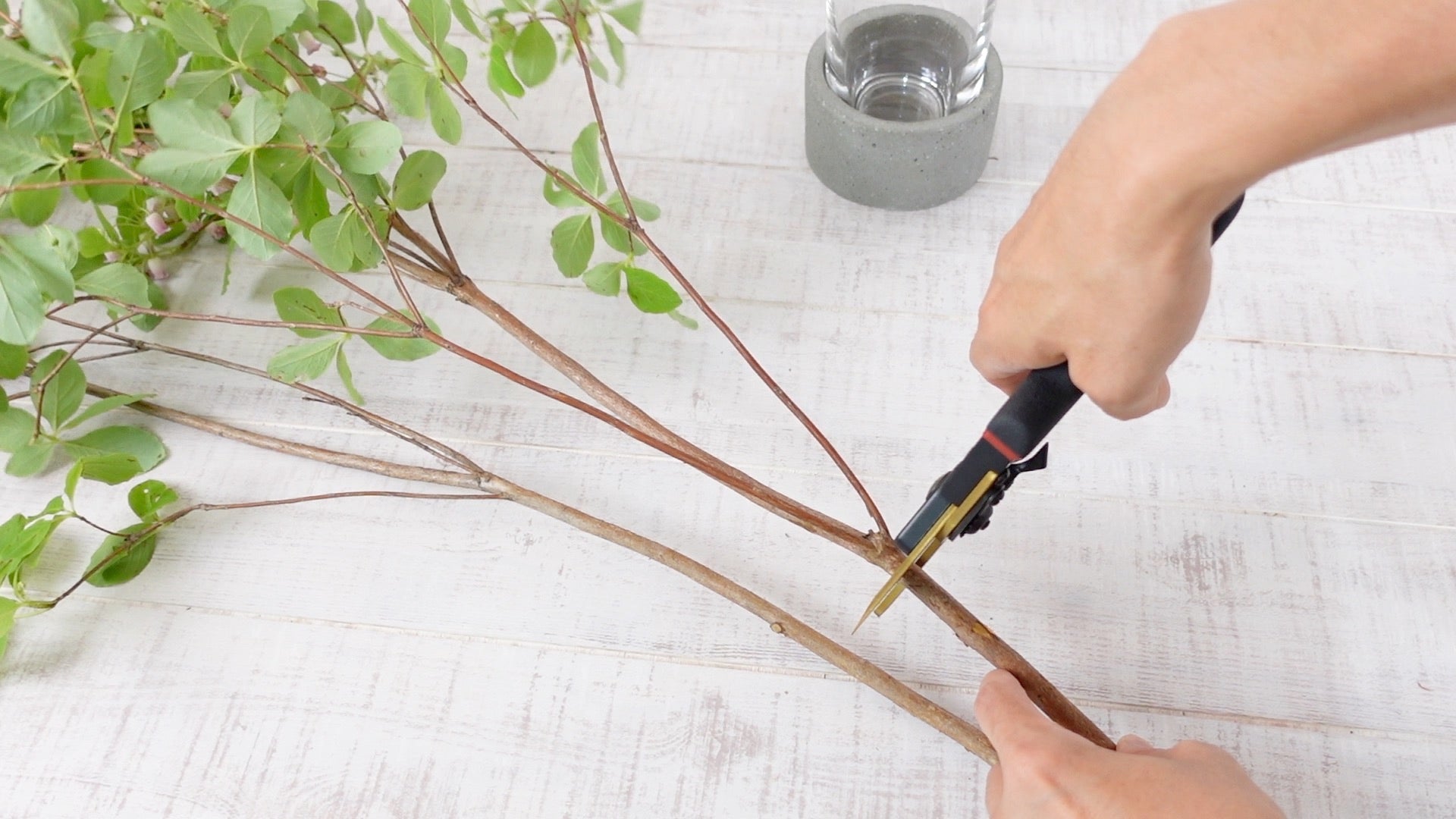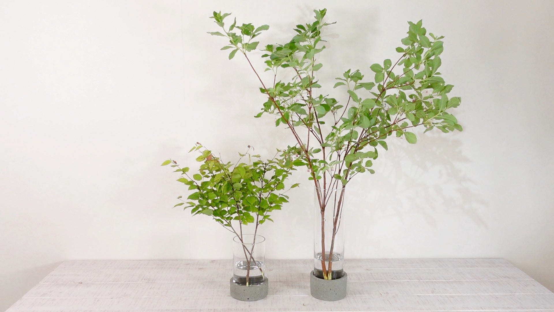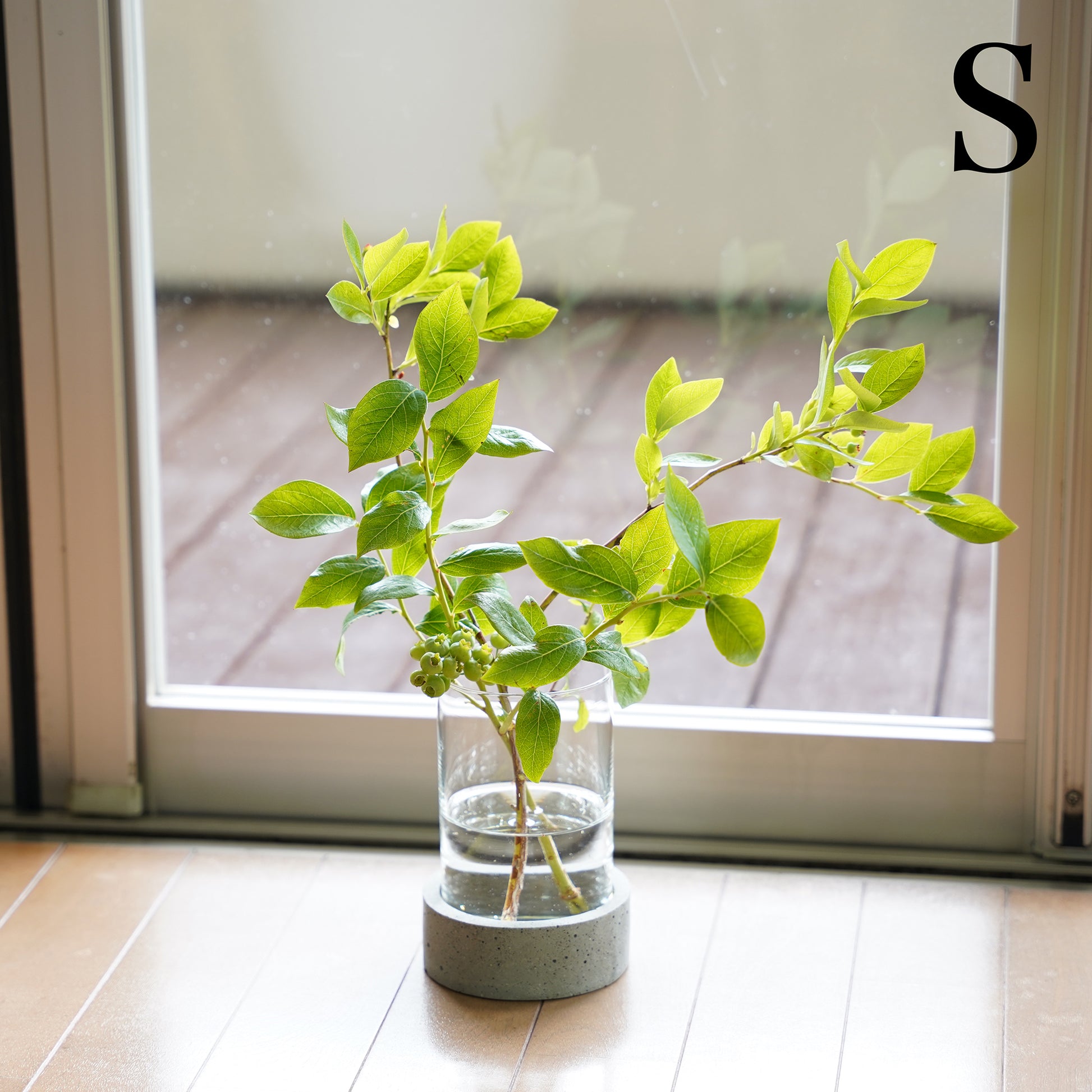 枝ものを美しく飾るために設計された、コンクリート製の台座とガラス容器を組み合わせたフラワーベースです。台座が安定した土台となり、背の高い枝ものや重量のある花材を入れてもガラス容器が倒れにくく、シンプルでモダンなデザインは、和洋問わずさまざまなインテリアに調和します。コンパクトなSサイズはテーブルやデスク周りに、存在感のあるLサイズはリビングにおすすめ。桜や梅などの季節の枝もの、ユーカリやドウダンツツジといったグリーンまで、幅広い枝ものをスタイリッシュに演出します。