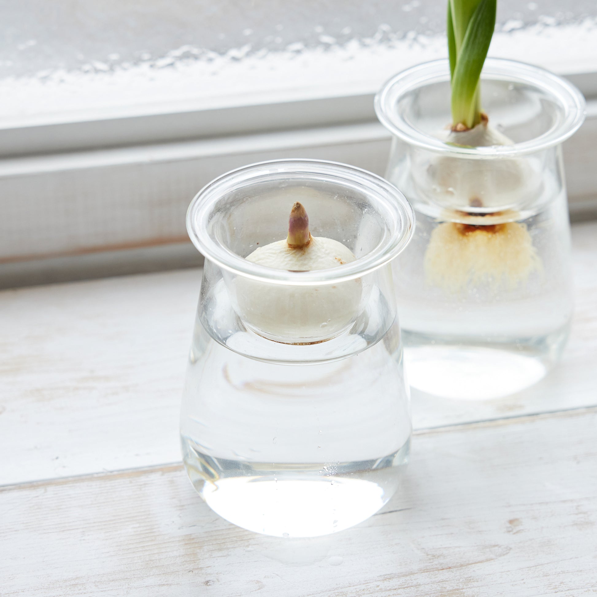 チューリップやヒヤシンスの水耕栽培を楽しめるガラス製の球根専用ベース。透明なガラスから根の成長が観察でき、インテリアとしても美しい一品です。球根の生命力を間近で感じられる、育てる喜びと鑑賞する楽しみが一つになった栽培容器です。